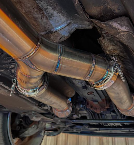 Nous avons installé un downpipe en diamètre 76 mm et une ligne après le catalyseur également en 76 mm.