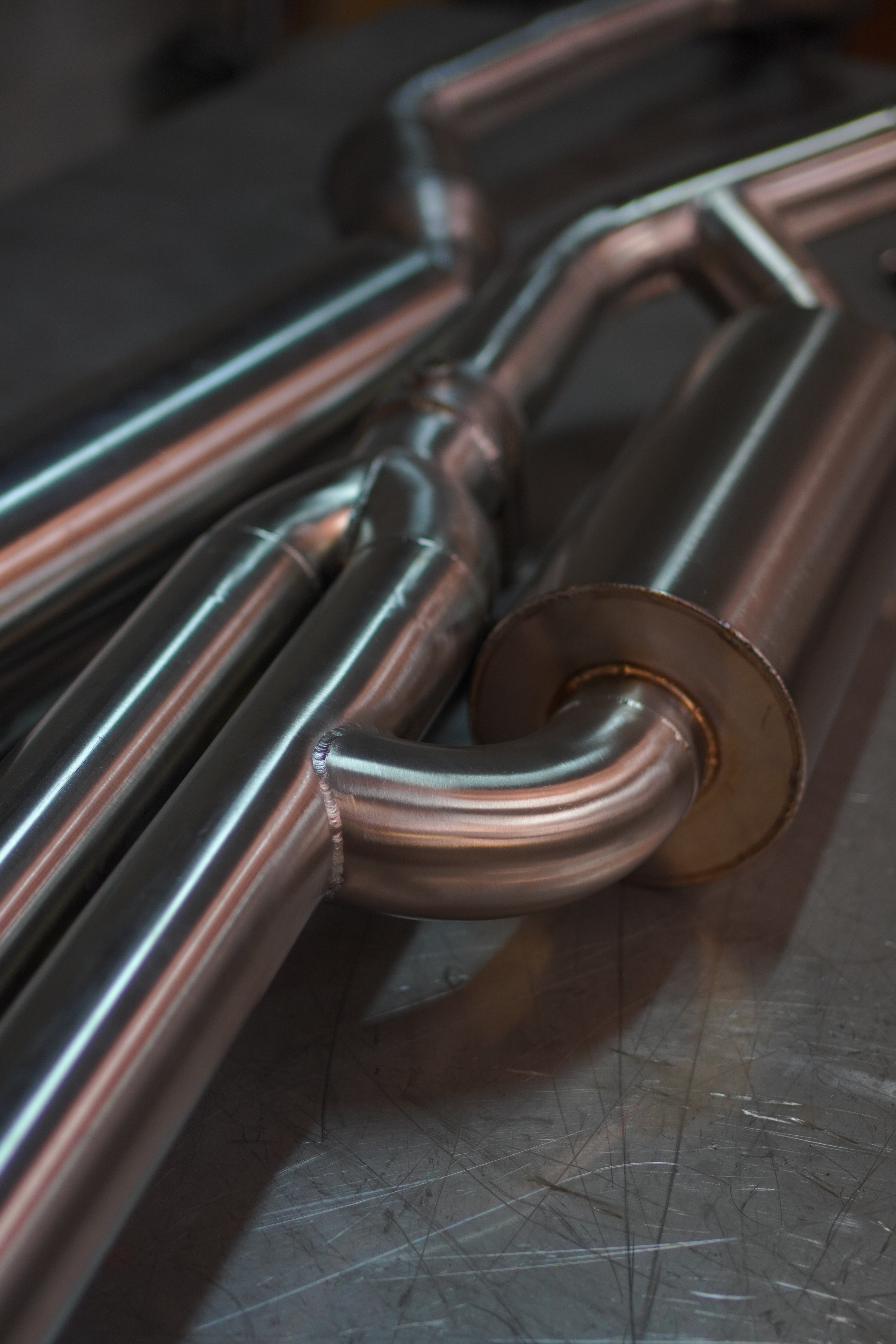 - Double sorties en tube inox brossé diamètres 63mm